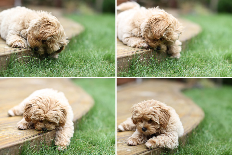 I got an email yesterday from one of my clients from my past life as a banker. Marel started off as a client, but quickly became a friend too (that happened a lot, and was probably the BIGGEST reason I stayed in banking for 13 years…). She needed some pictures for some business slides, and wondered if I could do it. She included a snapshot of her new 11 week old maltipoo Schatzie at the end of the email.