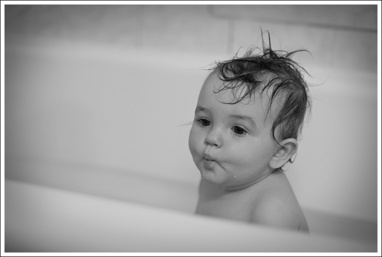 Just one of her many funny faces.  She looooves bath time!